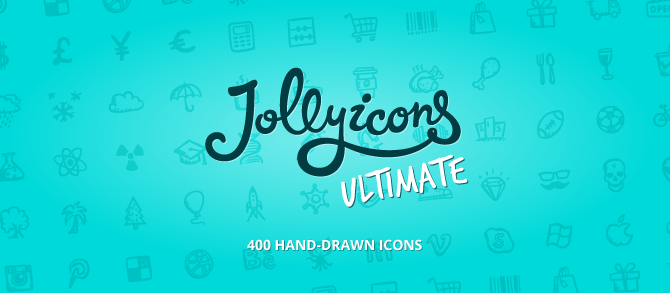 Jolly Icons Ultimate set includes 400 hand-drawn icon in eight formats.